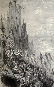 The illustrator: Gustave Doré (1832–1883) was a renowned French illustrator, engraver, and artist, celebrated for his dramatic and intricate style. His illustrations for literary classics—such as The Divine Comedy, Don Quixote, and Paradise Lost—are iconic. In this Arthurian volume, Doré’s engravings enhance the epic and mythic tone of the stories with his masterful use of shadow, scale, and emotional depth.