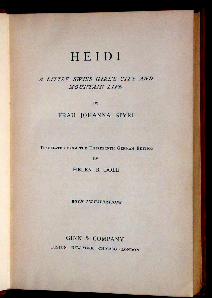 Title: HEIDI, A Little Swiss Girl's City and Mountain Life. Translated from the thirteenth German edition by Helen B. Dole. With illustrations.