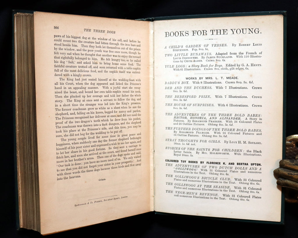 The book: Attractive early edition of the Green Fairy Book by Andrew Lang. In his Preface to this volume, Lang expressed the view that it would be "probably the last" of the collection. Their continuing popularity, however, demanded subsequent collections. In The Green Fairy Book, the third in the series, Lang has assembled stories from Spanish and Chinese traditions.