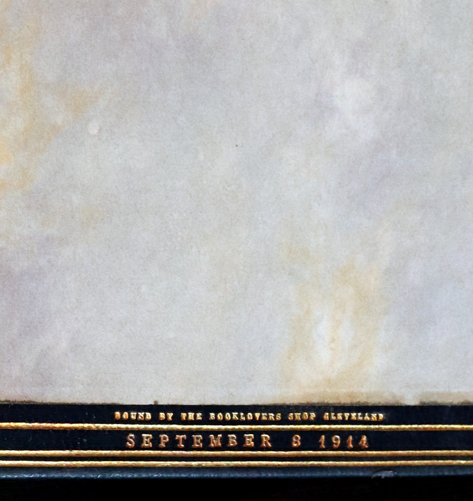 Binding: Attractive and good full leather binding signed and dated September 8th, 1914 by The Booklovers Shop in Cleveland (hinges scuffed but tight - as shown, overall slightly worn and scuffed - as shown) under a protective removable mylar cover. Upper edge gilt.