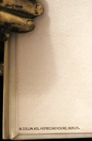 Binding: Attractive and very good full vellum binding with gilt title on spine, bound by W. Collin.KGL.Hofbuchbinderei.Berlin (hinges fine, overall slightly scuffed - as shown) under a protective removable mylar cover.