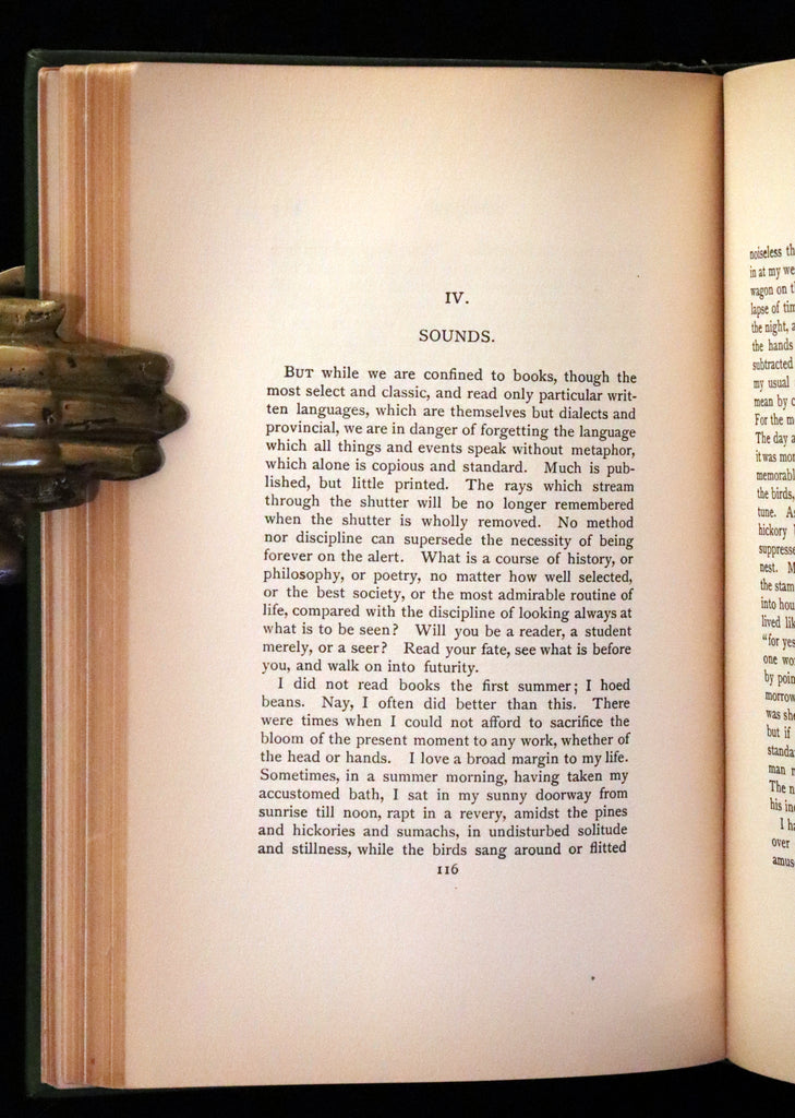 The book: Scarce First Copeland Illustrated Edition of Walden in a beautiful binding. The book is a reflection on Thoreau's two-year experience of living in a cabin he built himself in the woods near Walden Pond in Concord, Massachusetts. Thoreau describes his solitary and simple life in nature, meditating on the virtues of self-reliance, individualism, and non-conformity. He also criticizes the materialistic and conformist society of his time and advocates for a simpler, more meaningful way of living. "Walden" is considered a classic of American literature and a foundational text of the environmental and transcendentalist movements.