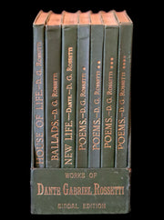 The book set: Scarce complete SIDDAL Edition of the Works of Dante Gabriel Rosetti in his original bookcase. A rare find in any condition!