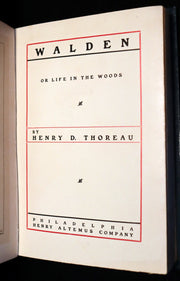 The book: Scarce in this binding, this is an Altemus' 19th-century edition of Walden (first published as Walden; or, Life in the Woods) -- a book by noted transcendentalist Henry David Thoreau. The text is a reflection upon simple living in natural surroundings. The work is part personal declaration of independence, social experiment, voyage of spiritual discovery, satire, and (to some degree) manual for self-reliance.