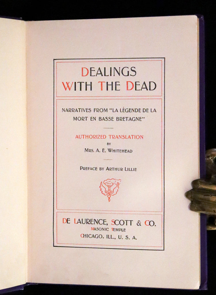 1900 Scarce First US Edition - DEALINGS WITH THE DEAD, Narratives From "La Légende de la Mort en Basse Bretagne"