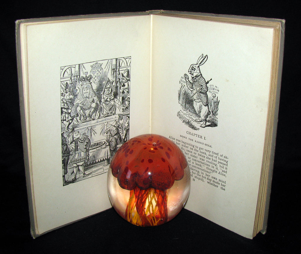 The book : Attractive and Uncommon illustrated edition combining Alice in Wonderland by Lewis Carroll with "Flower Fables" by Alcott. The Conkey Company also published another undated Alice containing Alcott's "Flower Fables" with a different depiction of Alice on the cover.