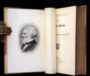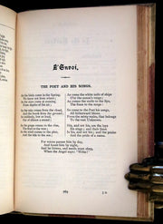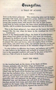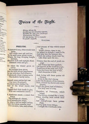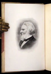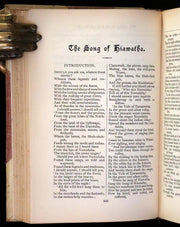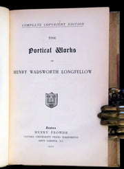 The book: This attractive copy of The Poetical Works of Henry Wadsworth Longfellow, published in 1901, is a rare and remarkable edition notable for its exquisite Art Nouveau vellum binding. This comprehensive collection of Longfellow's poetry including Voices o the Night, Evangeline, and The Song of Hiawatha, presented by the Oxford University Press, is a testament to the enduring popularity and significance of his work. The binding, with its gilt and colored decorations typical of the Art Nouveau style, adds a unique aesthetic value to the book, making it a sought-after item for collectors of rare books and admirers of Longfellow's poetry.
