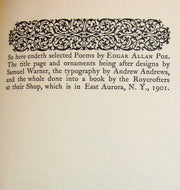 Title : Poems by Edgar A. Poe Done into a printed book by the Roycrofters East Aurora.