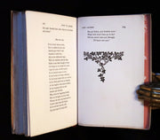 The book: Attractive and very nice first Housman edition of Aucassin et Nicolette (12th or 13th century) the anonymous medieval French fictional story. It is the unique example of a chantefable, literally, a "sung story", a combination of prose and verse (similar to a prosimetrum). The story recounts the tale of Aucassin, son of Count Garin of Beaucaire, who so loved Nicolette, a Saracen maiden, who had been sold to the Viscount of Beaucaire, baptized and adopted by him, that he had forsaken knighthood and chivalry and even refused to defend his father's territories from enemies. Accordingly, his father ordered the Viscount to send Nicolette away, but instead, the Viscount locked her in a tower of his palace. Aucassin is imprisoned by his father to prevent him from going after his beloved Nicolette. But Nicolette escapes, hears Aucassin lamenting in his cell, and comforts him with sweet words. She flees to the forest outside the gates, and there, in order to test Aucassin's fidelity, builds a rustic home to await his arrival. When he is released from prison Aucassin hears from shepherd lads of Nicolette's hiding-place and seeks her bower. The lovers, united, resolve to leave the country...