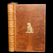 Binding: Attractive and very good, near fine exquisite full polished tree calf leather, elaborately tooled in gilt on the spine with raised bands and gilt dentelle. The front board bears a finely executed gilt figure of a seated dog adorned with star motifs, reminiscent of the immortal golden watchdogs forged by Hephaestus in Homer’s Odyssey, guardians of the palace of Alcinous. Unsigned but of fine craftsmanship, in the style of the best London binders of the Edwardian era (hinges fine, overall slightly scuffed - as shown) under a protective removable mylar cover. All edges marbled.