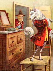 The book: A delightful and increasingly scarce example of McLoughlin Brothers’ celebrated linen (or “rag”) books, Mother Hubbard and her Dog represents a charming chapter in early American children’s publishing. Produced circa 1904, this large-format edition was designed for durability, printed entirely on linen to withstand repeated handling by young readers.