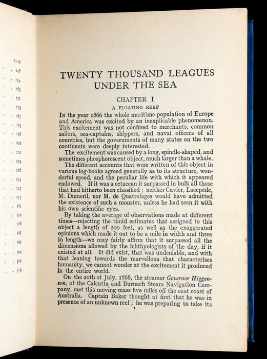 The book: A striking early 20th-century English edition of Jules Verne’s classic science fiction novel Twenty Thousand Leagues Under the Sea, nicely illustrated by Henry Austin. This edition stands out not only for its collectible pictorial binding—vividly depicting Captain Nemo’s undersea adventures—but also for its solid condition and richly atmospheric illustrations. A handsome and display-worthy example of an enduring literary masterpiece.