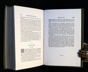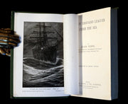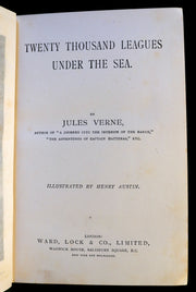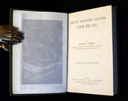 The book: Rare and very attractive Ward, Lock & Co green variant edition of Twenty Thousand Leagues Under the Sea (French: Vingt mille lieues sous les mers: Tour du monde sous-marin) the classic science fiction novel by French writer Jules Verne published in 1870. The book was highly acclaimed when released and still is now; it is regarded as one of the premiere adventure novels and one of Verne's greatest works, along with Around the World in Eighty Days and Journey to the Center of the Earth. The description of Nemo's ship, called the Nautilus, was considered ahead of its time, as it accurately describes features on submarines, which at the time were very primitive vessels.