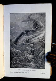 The book: Rare and attractive Ward, Lock & Co green variant edition of Twenty Thousand Leagues Under the Sea (French: Vingt mille lieues sous les mers: Tour du monde sous-marin) the classic science fiction novel by French writer Jules Verne published in 1870. The book was highly acclaimed when released and still is now; it is regarded as one of the premiere adventure novels and one of Verne's greatest works, along with Around the World in Eighty Days and Journey to the Center of the Earth. The description of Nemo's ship, called the Nautilus, was considered ahead of its time, as it accurately describes features on submarines, which at the time were very primitive vessels.