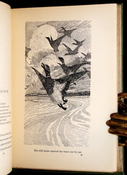 Binding: Attractive and very good, near fine, original publisher's green cloth binding with elaborate gilt decorations on the cover and spine. The cover design features beautifully detailed golden birds, enhancing the aesthetic appeal of this volume. The rear cover is adorned with a complementary gilt design, showcasing elegant flying birds (hinges fine, overall slightly scuffed - as shown) under a protective removable mylar cover. Upper edge gilt.