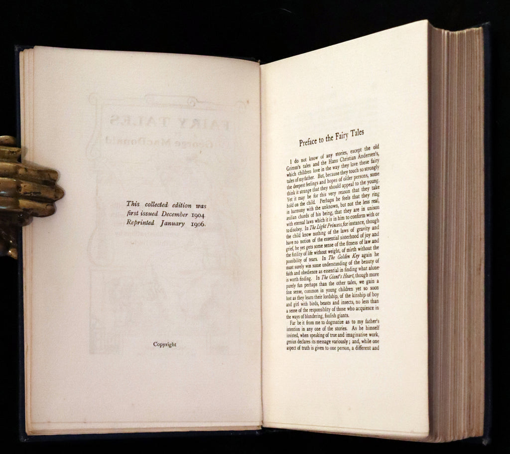 The book: Scarce and very nice collected edition of Macdonald's Fairy Tales including The Light Princess, The Giant's Heart, The Golden Key, The Shadows, Little Daylight, Cross Purposes, The Carasoyn, The Day Boy and the Night Girl.