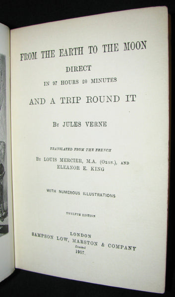 1907 Rare Book - JULES VERNE - From the Earth to the Moon, Direct in 97 hours 20 minutes