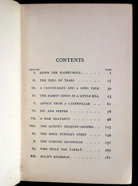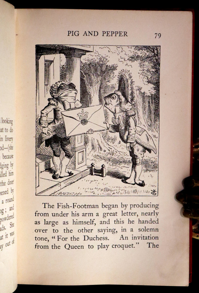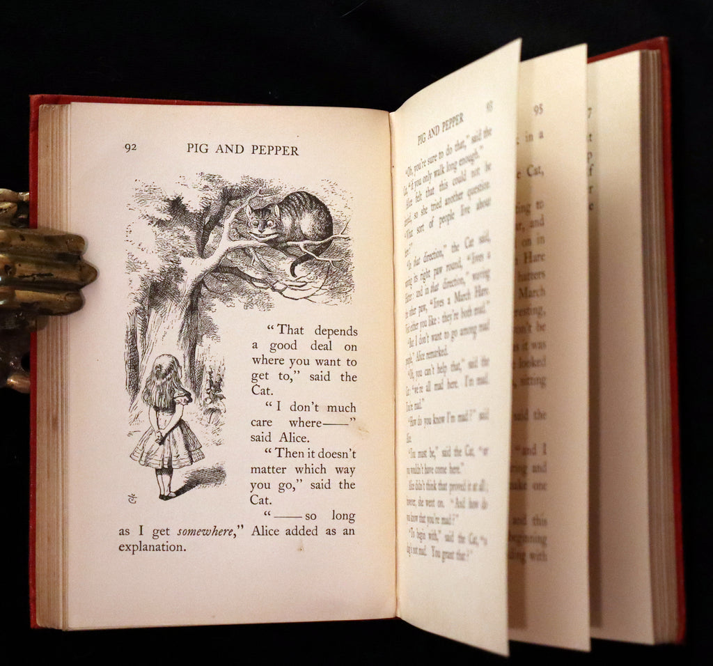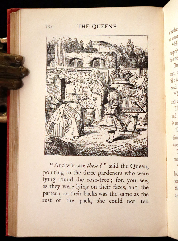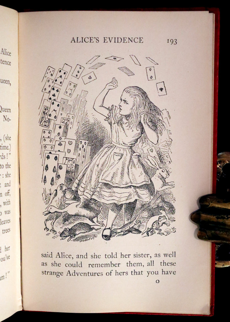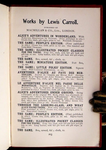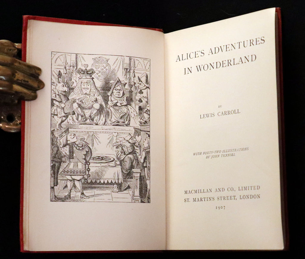 The book: Scarce and attractive second printing of the First "miniature edition" of Alice's Adventures in Wonderland. The miniature editions published in 1907 (Alice) and 1908 (Looking Glass) is similarly appealing as they followed the same design style of covers to the original editions, just smaller.