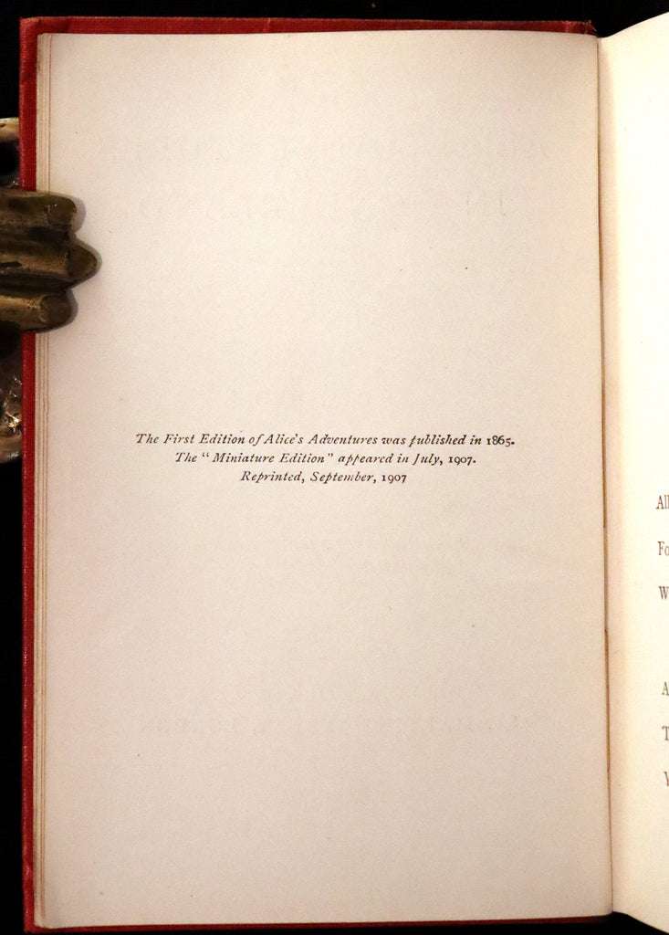 1907 Scarce First "Miniature" Edition - Alice's Adventures in Wonderland by Lewis Carroll.