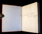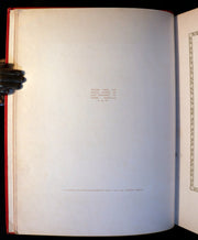 Binding: Very beautiful and very good quarter red calf leather binding, with original red cloth front cover elaborately decorated in gilt (hinges fine, overall slightly worn and scuffed - as shown, corners slightly bumped - as shown) under a protective removable mylar cover.