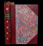Binding: Attractive and fine maroon half morocco leather binding over marbled boards (hinges fine) under a protective removable mylar cover. Upper edge gilt.