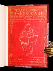 The book: Attractive and rare First illustrated edition by Arthur Rackham of those Tales From Shakespeare beautifully bound in half morocco leather. Including Romeo and Juliet, King Lear, Othello, Macbeth, The Merchant of Venice, Hamlet, The Tempest, A Midsummer Night's Dream, etc.