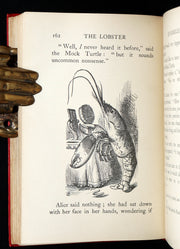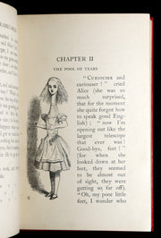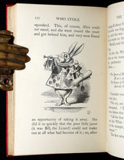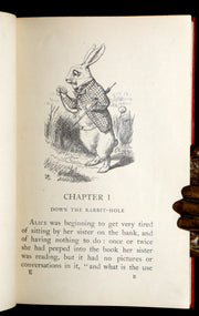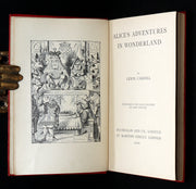 Binding: Attractive and very good, near fine, original publisher's red full-cloth binding with a gilt-stamped illustration of Alice on the front cover (hinges fine, overall slightly scuffed - as shown) under a protective removable mylar cover.