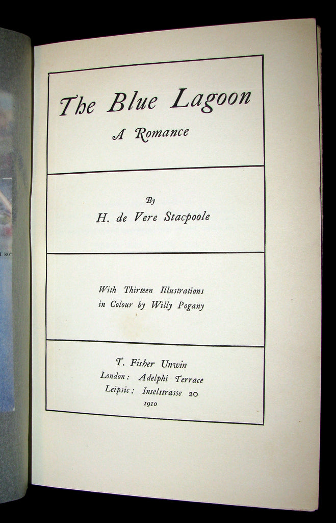 1910 Rare 1st Edition - The BLUE LAGOON by H. De Vere Stacpoole illustrated by Willy Pogany.