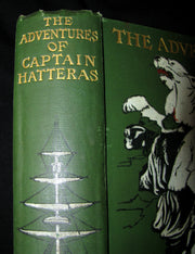 The book : Rare and attractive edition of The Adventures of Captain Hatteras (French: Voyages et aventures du capitaine Hatteras) -- an adventure novel by Jules Verne in two parts: The English at the North Pole (French: Les Anglais au pôle nord) and The desert of ice (French: Le Désert de glace).