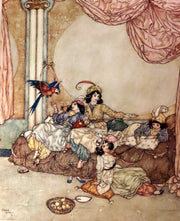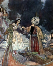 The illustrator: Edmund Dulac (born Edmond Dulac; October 22, 1882 – May 25, 1953) was a French-born, British naturalised magazine illustrator, book illustrator and stamp designer. Born in Toulouse he studied law but later turned to the study of art at the École des Beaux-Arts. He moved to London early in the 20th century and in 1905 received his first commission to illustrate the novels of the Brontë Sisters. During World War I, Dulac produced relief books and when after the war the deluxe children's book market shrank he turned to magazine illustrations among other ventures. He designed banknotes during World War II and postage stamps, most notably those that heralded the beginning of Queen Elizabeth II's reign.