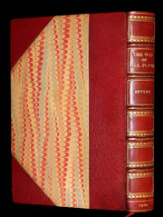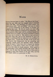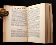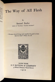 The book: Very nicely bound first US edition of The Way of All Flesh (sometimes called Ernest Pontifex, or the Way of All Flesh) -- a semi-autobiographical novel by Samuel Butler that attacks Victorian-era hypocrisy. Written between 1873 and 1884, it traces four generations of the Pontifex family. Butler dared not publish it during his lifetime, but when it was published in UK (in 1903) it was accepted as part of the general reaction against Victorianism. A. A. Milne, author of Winnie-the-Pooh, wrote about it in one of his essays "A Household Book", published in a collection of his essays, Not That It Matters: "Once upon a time I discovered Samuel Butler; not the other two, but the one who wrote The Way of All Flesh, the second-best novel in the English language. I say the second-best, so that, if you remind me of Tom Jones, or The Mayor of Casterbridge, or any other that you fancy, I can say, of course, that one is the best."