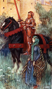 In 1909, Ernest Brown, of the Leicester Galleries, commissioned a series of 28 watercolour illustrations to Tennyson's Idylls of the King, which Fortescue-Brickdale painted over two years. They were exhibited at the gallery in 1911, and 24 of them were published the following year in a deluxe edition of the first four Idylls.