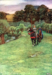 In 1909, Ernest Brown, of the Leicester Galleries, commissioned a series of 28 watercolour illustrations to Tennyson's Idylls of the King, which Fortescue-Brickdale painted over two years. They were exhibited at the gallery in 1911, and 24 of them were published the following year in a deluxe edition of the first four Idylls.