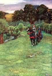 In 1909, Ernest Brown, of the Leicester Galleries, commissioned a series of 28 watercolour illustrations to Tennyson's Idylls of the King, which Fortescue-Brickdale painted over two years. They were exhibited at the gallery in 1911, and 24 of them were published the following year in a deluxe edition of the first four Idylls.