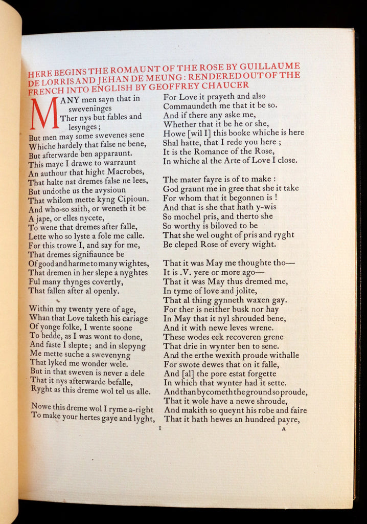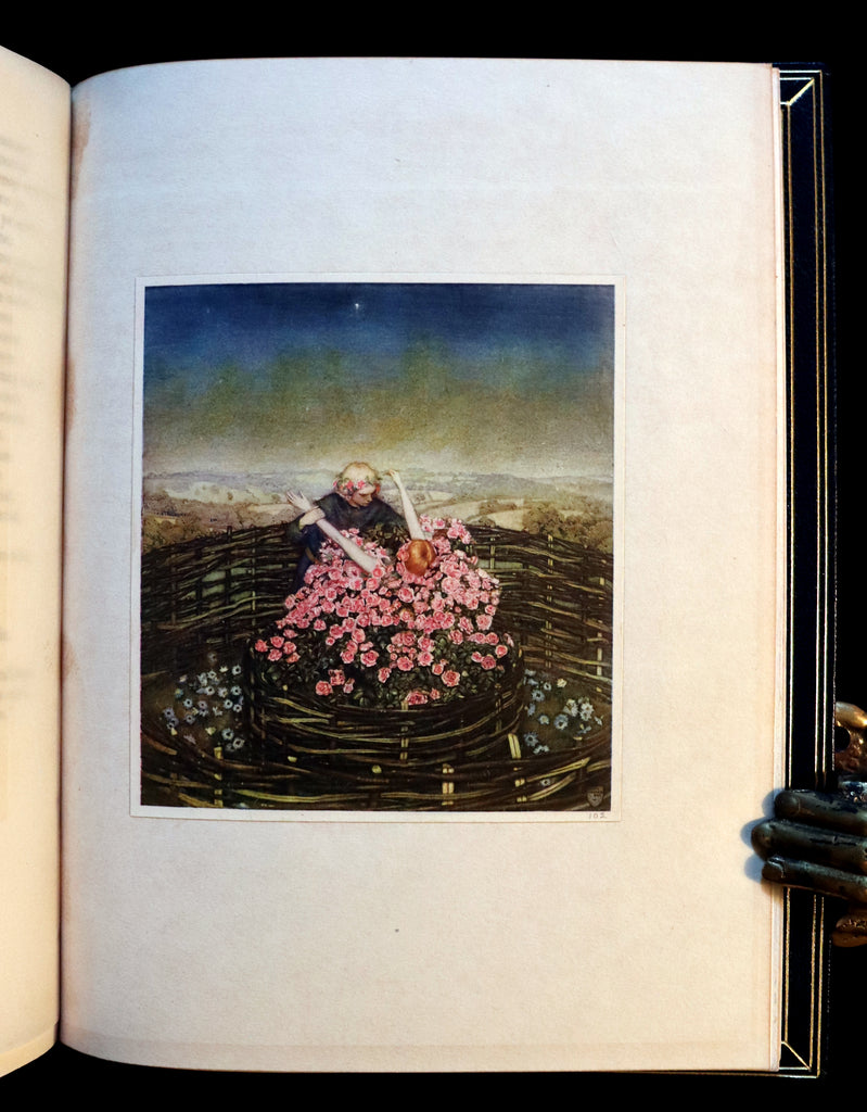 The book: Wonderful First Keith Henderson & Norman Wilkinson illustrated edition of The Romaunt of the Rose (the Romaunt) -- a partial translation into Middle English of the French medieval allegorical poem, le Roman de la Rose (le Roman). Originally believed to be the work of Chaucer, the Romaunt inspired controversy among 19th-century scholars when parts of the text were found to differ in style from Chaucer's other works. Also the text was found to contain three distinct fragments of translation. Together, the fragments—A, B, and C—provide a translation of approximately one-third of Le Roman.