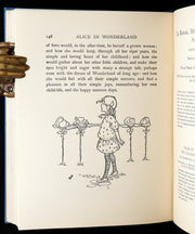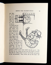 Binding: Attractive and near fine publisher’s sky-blue cloth binding, decoratively stamped in gilt on the upper cover and spine, with gilt ruling and a vignette of Alice and the White Rabbit on the spine (hinges fine - as shown) under a protective removable mylar cover.