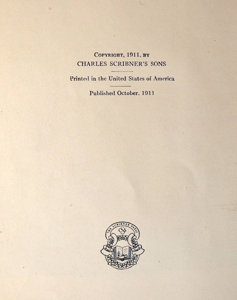 Publisher: New York, Charles Scribner's Sons, 1911 - First Edition, First Printing, with "Published October 1911" and the Scribner seal present on the copyright page.