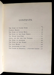 The book: Scarce and attractive First illustrated Edition by Arthur A. Dixon of Hauff's Fairy Tales including: “The Story of Caliph Stork”, “The Dwarf Long-Nose”, “ Fatima’s Rescue”, " The Story of the False Prince" and “The Cavern of Steenfoll - A Scottish Legend”, etc.