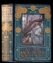 The book: Rare and attractive edition of At the Back of the North Wind -- a children's book written by Scottish author George MacDonald. It was serialized in the children's magazine Good Words for the Young beginning in 1868 and was published in book form in 1871. It is a fantasy centered on a boy named Diamond and his adventures with the North Wind. Diamond travels together with the mysterious Lady North Wind through the nights. The book includes the fairy tale Little Daylight, which has been pulled out as an independent work, or separately, added to other collections of his fairy tales.