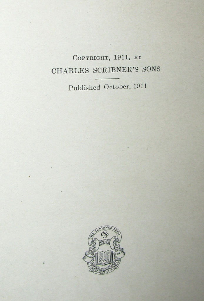 Publisher : New York, Charles Scribner's Sons, 1911 - First Edition, First Printing, with "Published October, 1911" and the Scribner seal present on the copyright page.