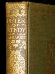 The book : Rare and attractive First American edition of Peter Pan; or, the Boy Who Wouldn't Grow Up or Peter and Wendy is J. M. Barrie's most famous work, in the form of a 1904 play and a 1911 novel. Both versions tell the story of Peter Pan, a mischievous little boy who can fly, and his adventures on the island of Neverland with Wendy Darling and her brothers, the fairy Tinker Bell, the Lost Boys, the Indian princess Tiger Lily, and the pirate Captain Hook. The play and novel were inspired by Barrie's friendship with the Llewelyn Davies family. Barrie continued to revise the play for years after its debut; the novel reflects one version of the story. A rare find in any condition!