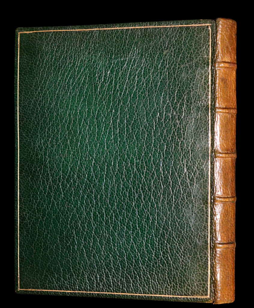 Binding: Attractive and very good full green morocco leather binding (hinges fine, spine sunned - as shown, overall slightly scuffed - as shown) under a removable protective mylar cover. All edges gilt.