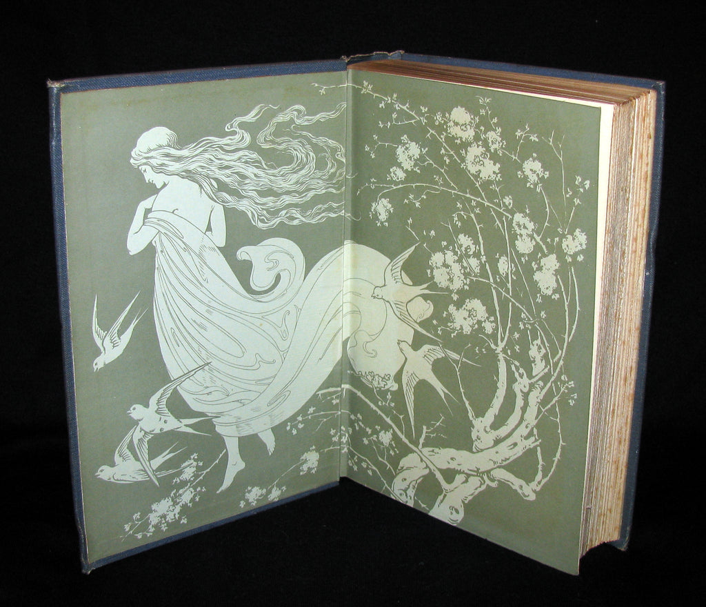 Binding: Very good and attractive original decorated cloth covered boards with gold stamped lettering and a pictorial pastedown on front cover (hinges fine, overall slightly worn and scuffed) under a protective removable mylar cover. The Art Nouveau binding is typical of Blackie in this period, complete with stylized Glasgow roses.