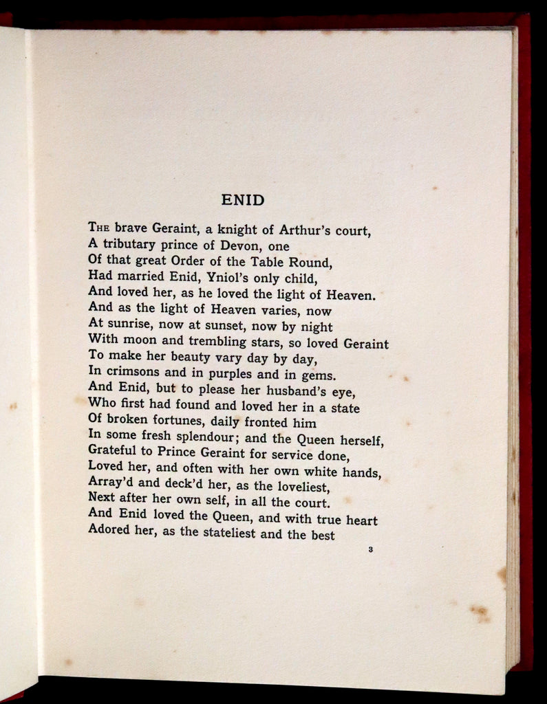 The book: Rare in this very attractive binding, beautiful edition Illustrated by Pre-Raphaelite artist Eleanor Fortescue Brickdale of Idylls of the King by Tennyson.