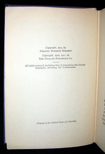 The book : Rare and attractive First American edition of The Secret Garden - The children's novel by Frances Hodgson Burnett first published as a book in 1911, after a version was published as an American magazine serial beginning in 1910. Set in England, it is one of Burnett's most popular novels and is considered a classic of English children's literature. Several stage and film adaptations have been made.
