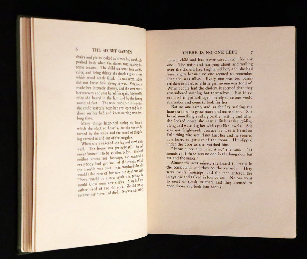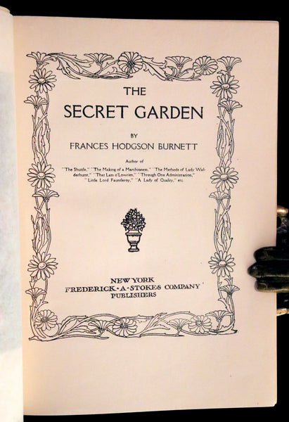 The book: Rare and attractive First Edition of The Secret Garden - The children's novel by Frances Hodgson Burnett first published as a book in 1911, after a version was published as an American magazine serial beginning in 1910. Set in England, it is one of Burnett's most popular novels and is considered a classic of English children's literature. Several stage and film adaptations have been made.