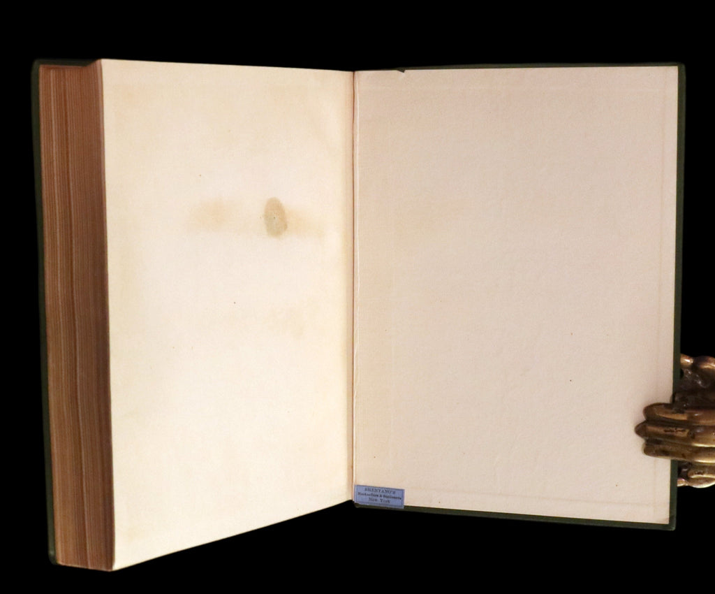 Binding: Very good and attractive original green full cloth-covered boards with gold stamped lettering and the small pictorial pastedown on the front cover. Roses on the top edge of the front cover (hinges fine, overall slightly worn and scuffed - as shown, gilt on spine faded - as shown) under a protective removable mylar cover.