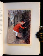 Binding: Very good and attractive original green cloth-covered boards with gold stamped lettering and the small pictorial pastedown on the front cover. Roses on the top edge of the front cover (hinges fine, gilt on spine faded - as shown) under a protective removable mylar cover.