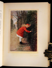 Binding: Very good and attractive original green full cloth-covered boards with gold stamped lettering and the small pictorial pastedown on the front cover. Roses on the top edge of the front cover (hinges fine, overall slightly worn and scuffed - as shown, gilt on spine faded - as shown) under a protective removable mylar cover.