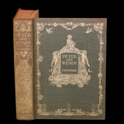The book: Rare and attractive First American edition of Peter Pan; or, the Boy Who Wouldn't Grow Up or Peter and Wendy is J. M. Barrie's most famous work, in the form of a 1904 play and a 1911 novel. Both versions tell Peter Pan, a mischievous little boy who can fly, and his adventures on the island of Neverland with Wendy Darling and her brothers, the fairy Tinker Bell, the Lost Boys, the Indian princess Tiger Lily, and the pirate Captain Hook. Barrie's friendship inspired the play and novel with the Llewelyn Davies family. Barrie continued to revise the play for years after its debut; the novel reflects one version of the story. A rare find in any condition!